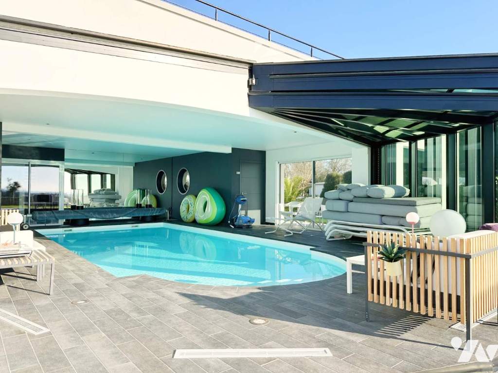 Cette maison d'environ 390 m² habitables, édifiée en 2012, est agrémentée d'une magnifique piscine avec espace sanitaires, équipée du système d'ouverture "OpenSun Akena" quasiment exclusif en France, permettant un usage tout au long de l'année.