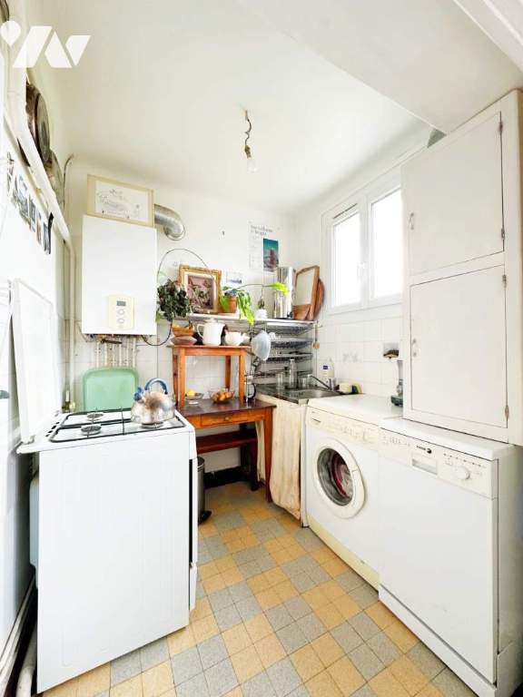 Une entrée avec placard desservant une cuisine semi-ouverte sur séjour, deux chambres, une salle d’eau, WC indépendant.
